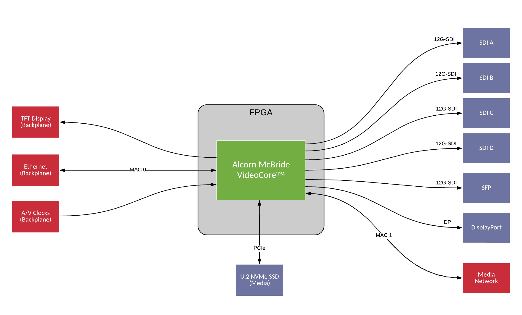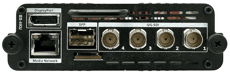 - 12G-SDI Coax, 12G-SDI SFP, and DisplayPort 1.4