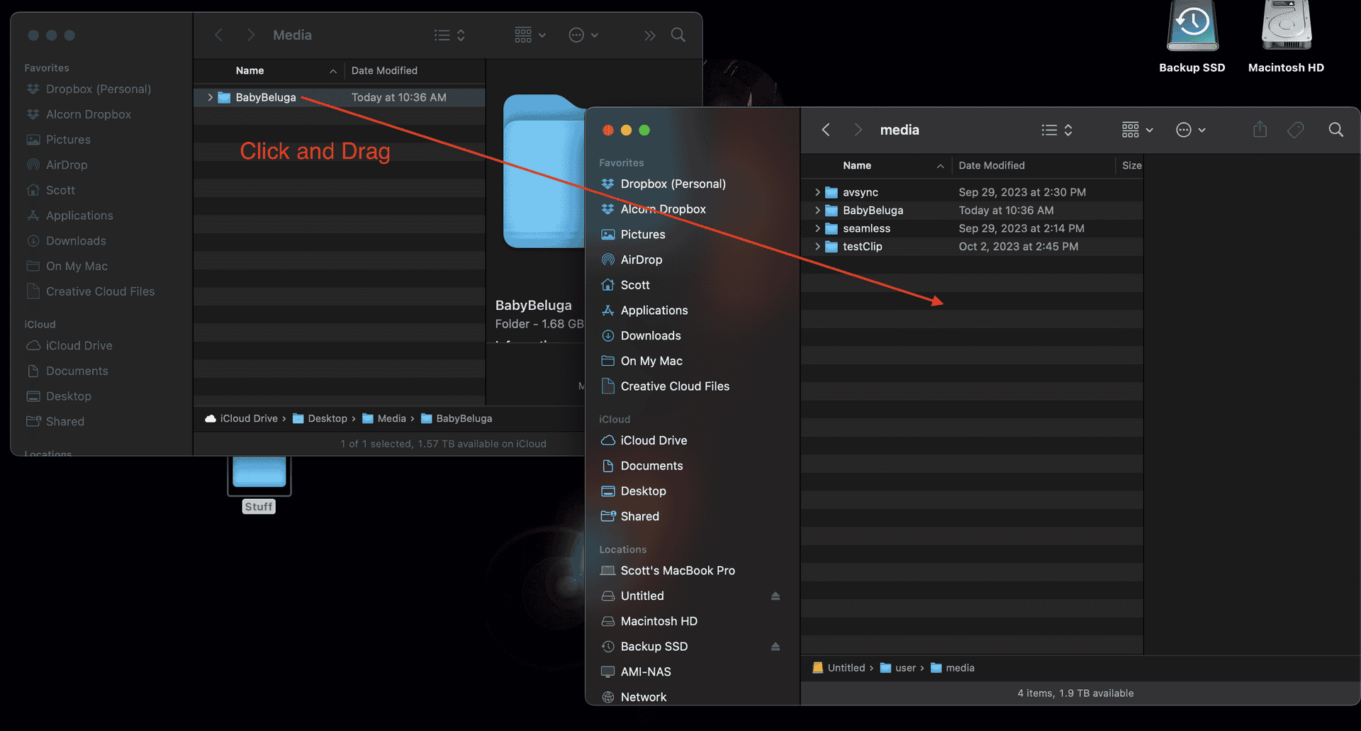 Click and drag the source folder containing the DPX image sequence to the media folder of the BX-4KU to begin the transfer.