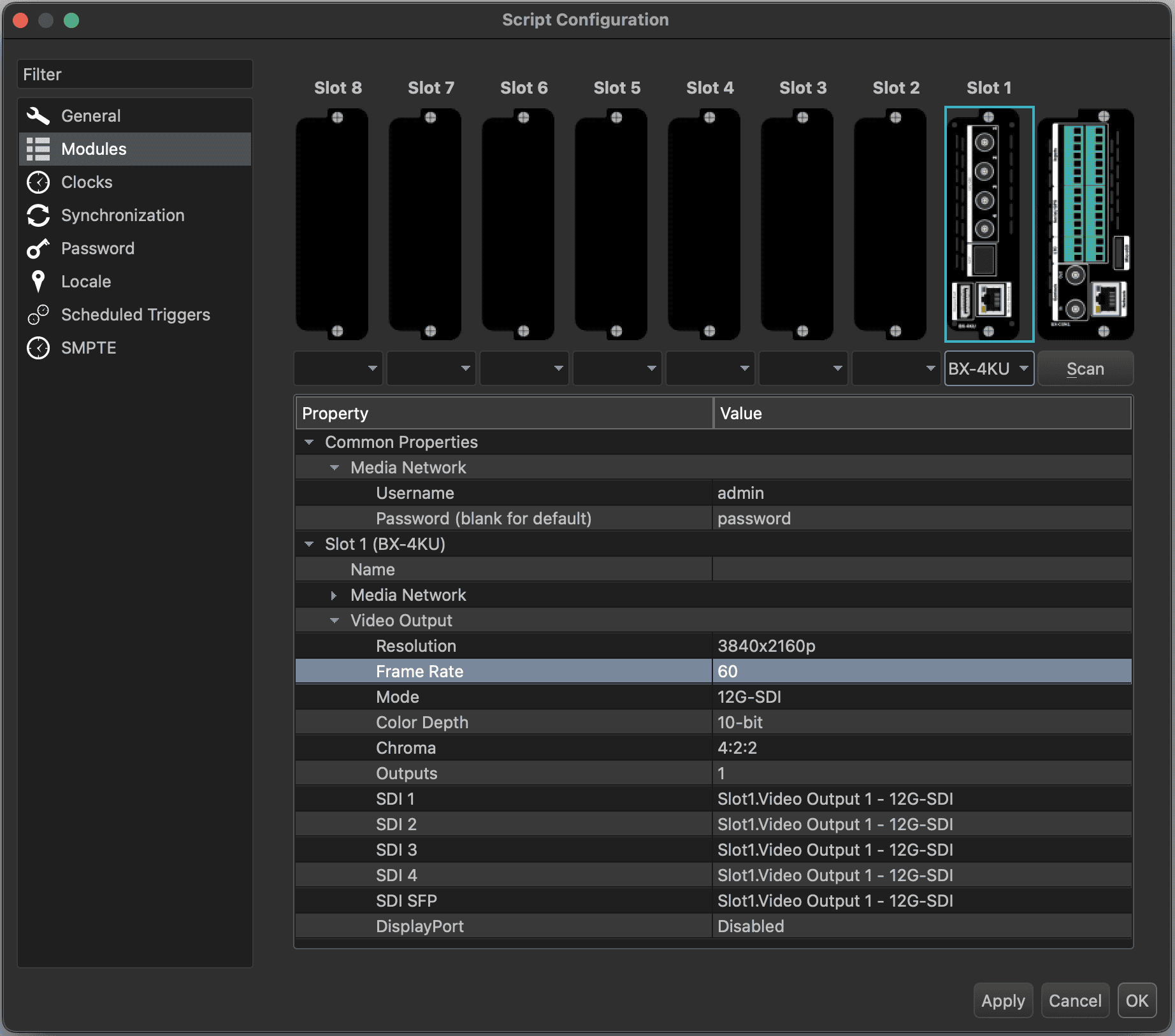 | Frame Rate | Ensure this matches a supported frame rate for the BX-4KU |
