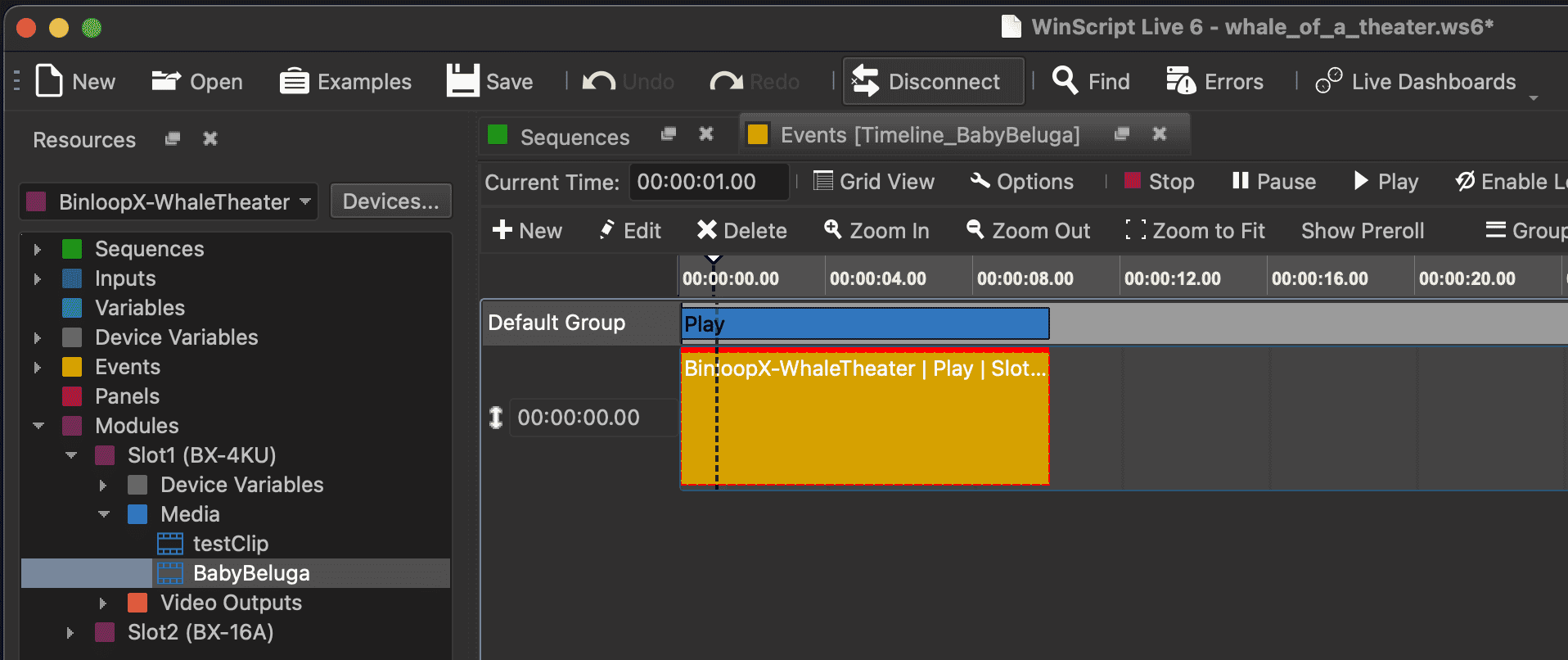 Once the new media clip is available as a Media resource in your project, you can drag it to any sequence to create a Play event or select it from any other event that controls media playback.