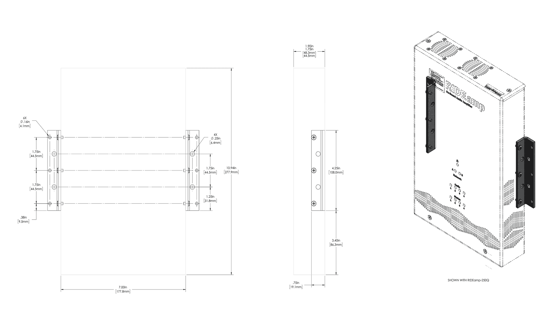 This is our single unit surface mounting kit, which allows RideAmp-25H to be flush mounted to a flat surface.