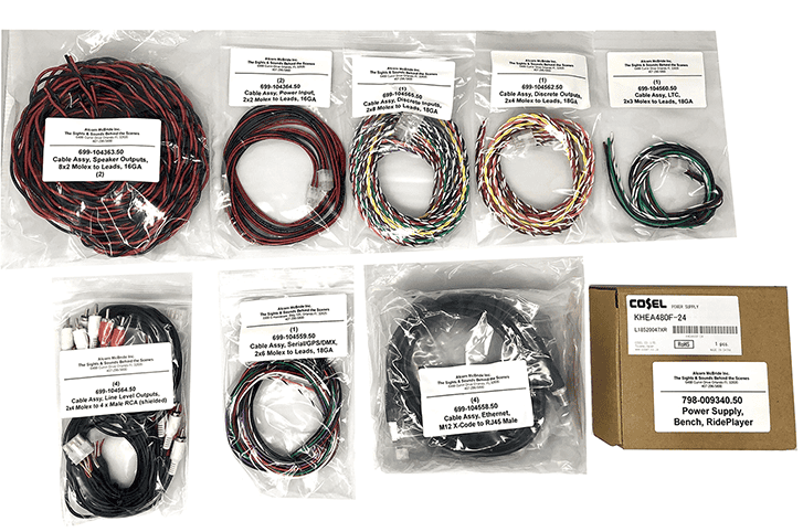 We recommend that new users order at least one of these kits to get started with RidePlayer development. Since most on-board audio applications use highly customized cabling, this kit is probably not practical for wiring up an entire fleet of ride vehicles.