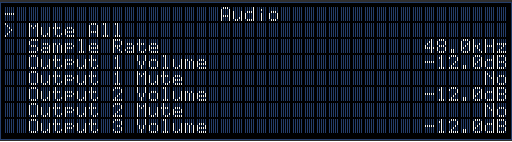 Output Volume -- Set volume level of individual output (-128dB->0dB)