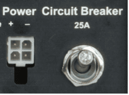 This connector is used to power the RidePlayer. While this unit will operate with a power source between 9-28VDC, we recommend 24VDC to achieve maximum output power for the built-in amplifiers. This input includes a built-in 25A circuit breaker switch.