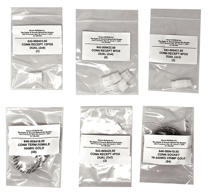 This kit provides a full set of blank Molex connectors and pins for the majority of RidePlayerX connectors. We offer this kit as a convenience to fabricators so that the individual parts don’t have to be researched and ordered. Unlike the Development Kit, the Connector Kit is intended to be used for fleet deployments. We recommend ordering a Connector Kit for each RidePlayerX in the ride vehicle fleet.
