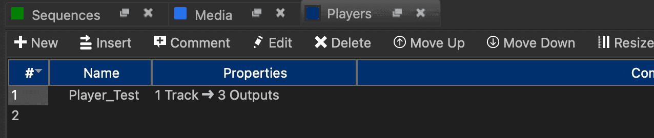 Next, we're going to create a special type of resource called a Player. Players make it really easy to configure how audio files are mapped to audio outputs as well as control a specific instance of audio media playback. This is incredibly useful, especially in common situations where multiple instances of audio playback are being mixed/layered on the same audio outputs. In the Resources list on the left, browse to the Players resource and double-click to view the Players list.