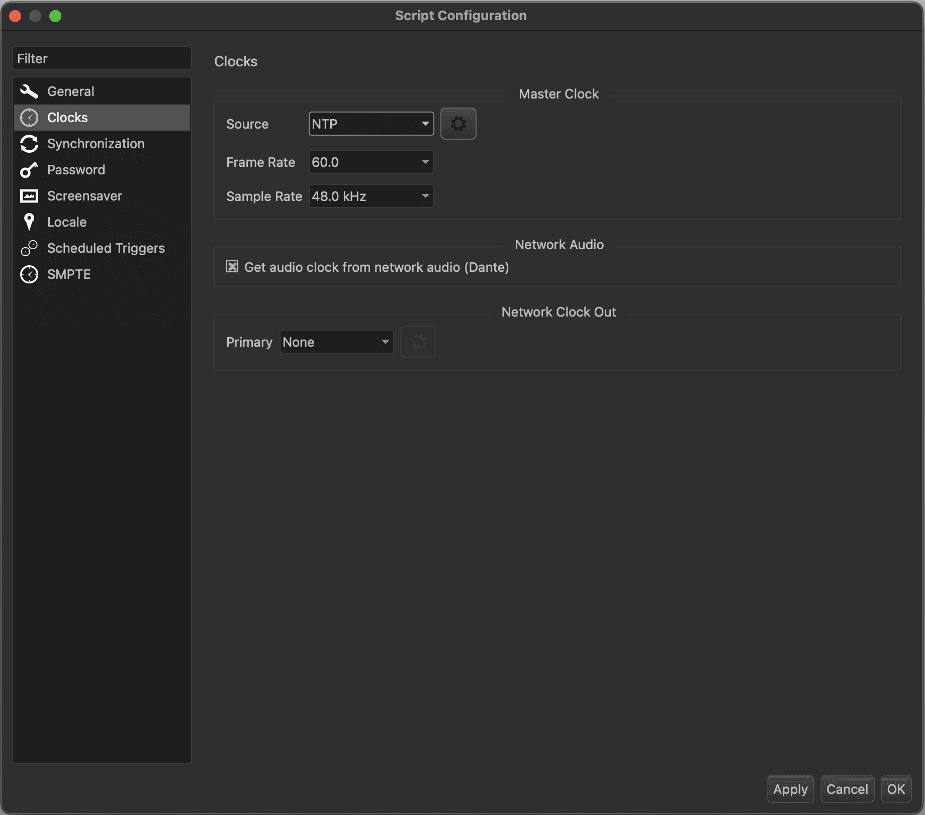 Next, select the Clocks section on the left of the Script Configuration screen.