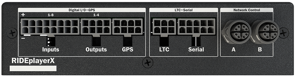 RidePlayerX is equipped with the Alcorn McBride SyncCore system to provide for extremely precise synchronization between the on-board and off-board systems. This technology uses several industry-standard methods to maintain a very precise clock between RidePlayer and other SyncCore enabled products like the V16X and BinloopX.