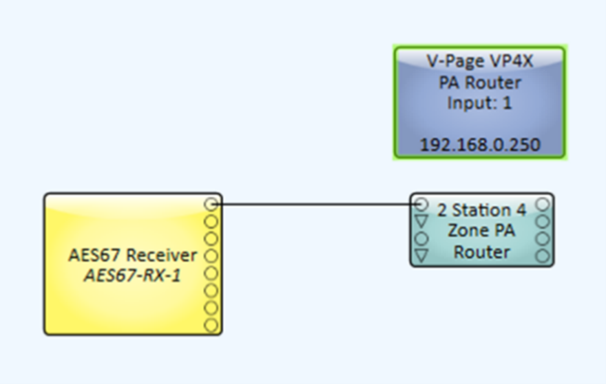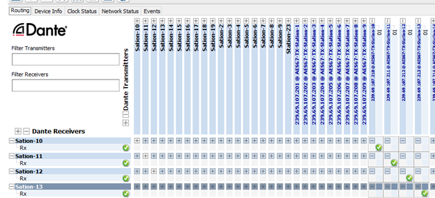 - Patch the audio from the AES67 Transmitter to the Dante receiver in the station.