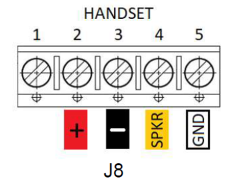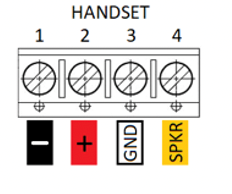The handset connector pinouts are shown below. Pin numbers are also printed on the Printed Circuit Board (PCB).