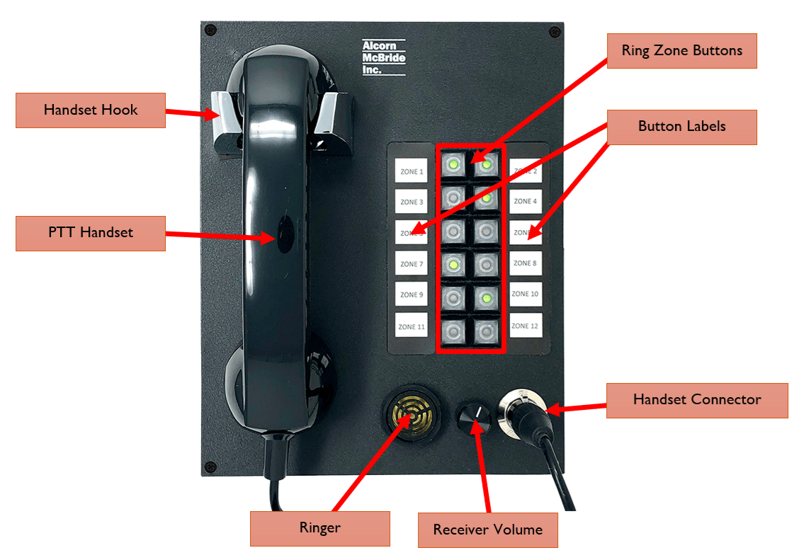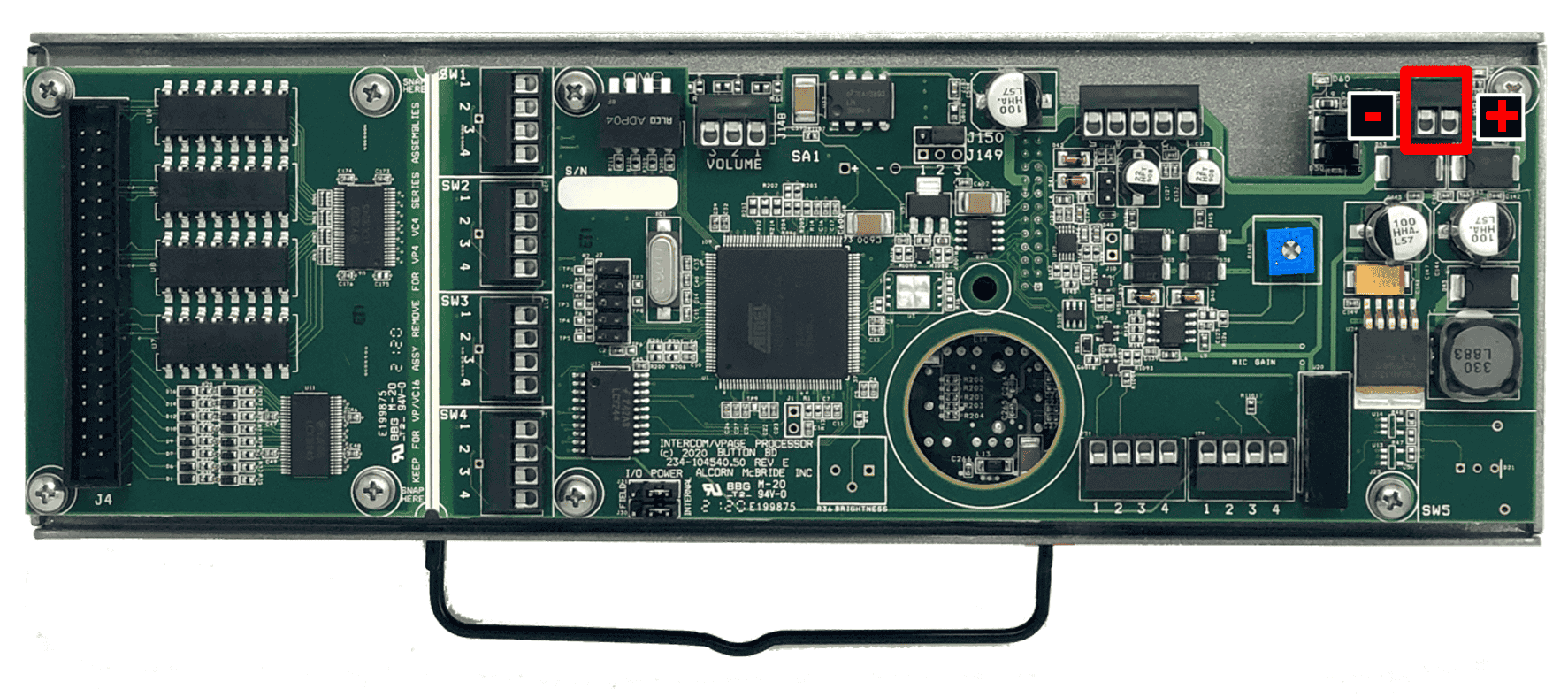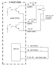 If your custom paging station requires 4 buttons/indicators or less, it’s very simple to interface directly to the IO terminals located on the VP16K main board. The Button inputs require a simple contact closure between pins 1-2 to activate. The lamp outputs apply +12 VDC across the terminals LAMP (-) and LAMP (+) to power your LED indicators.