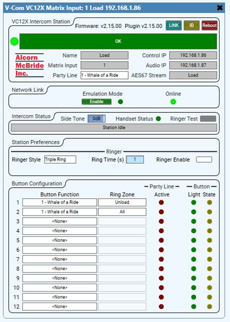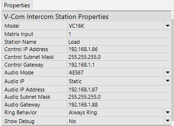 V-Com Intercom Station Plugin Properties