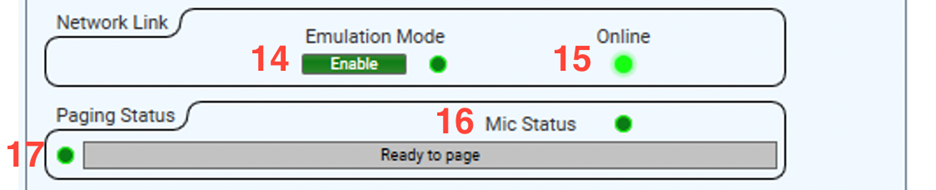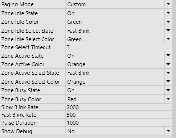 • Paging Mode: This mode selection dictates how the buttons light up when paging zones are in particular states. See the Zone Status LEDs section of this manual for details.