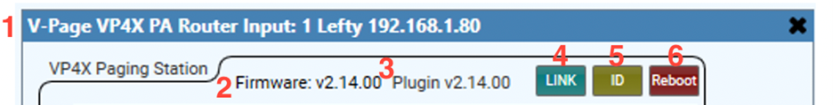 5. ID: Pressing the ID Button will make the front buttons of the V-Page blink momentarily so you can visually verify what station the plugin is linked to.