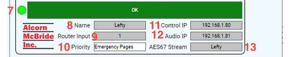 13. Audio Stream: The name of digital audio stream used (Dante or AES67).