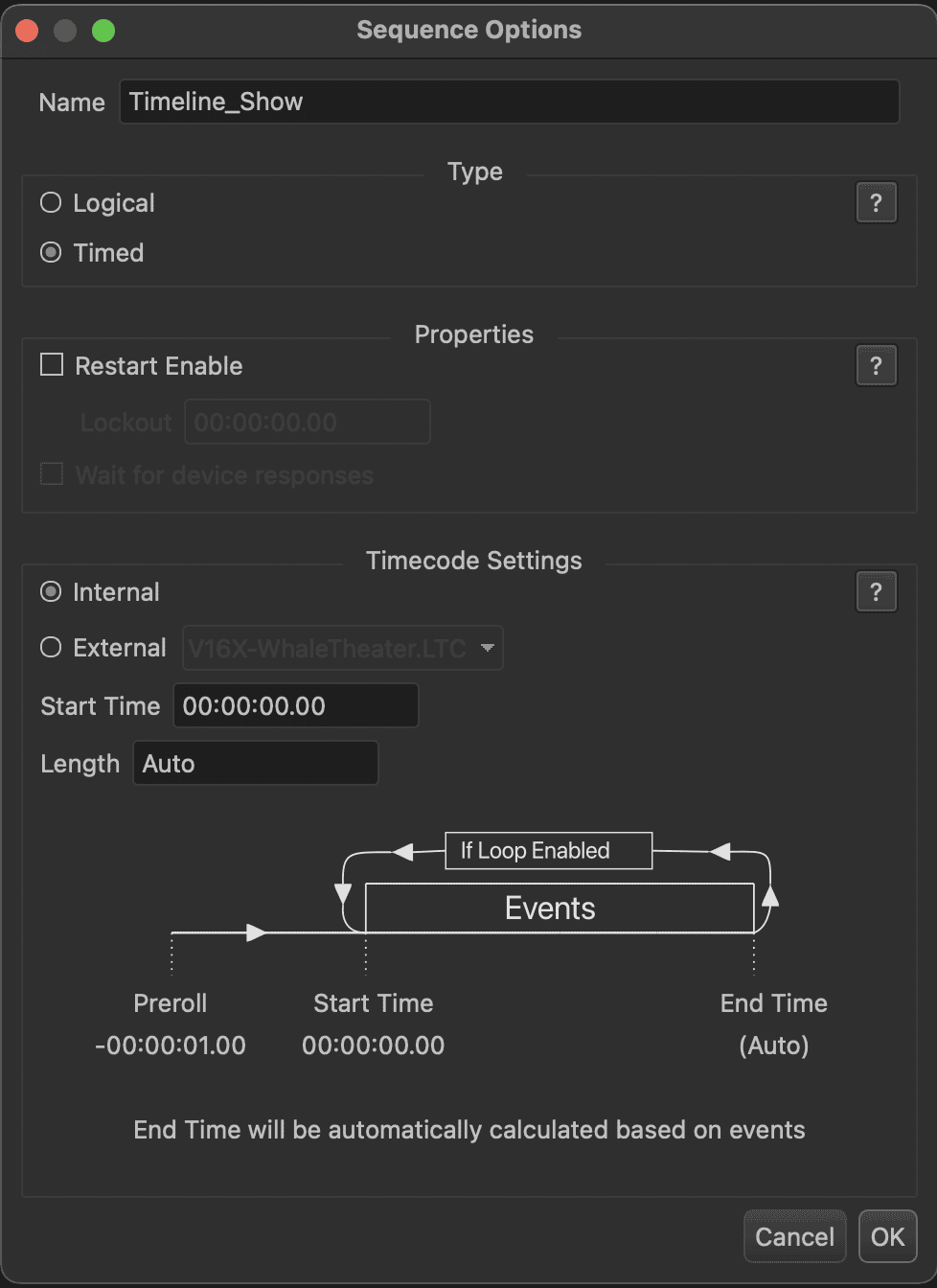 Enter the sequence name as Timeline_Show and select Timed as the Type.