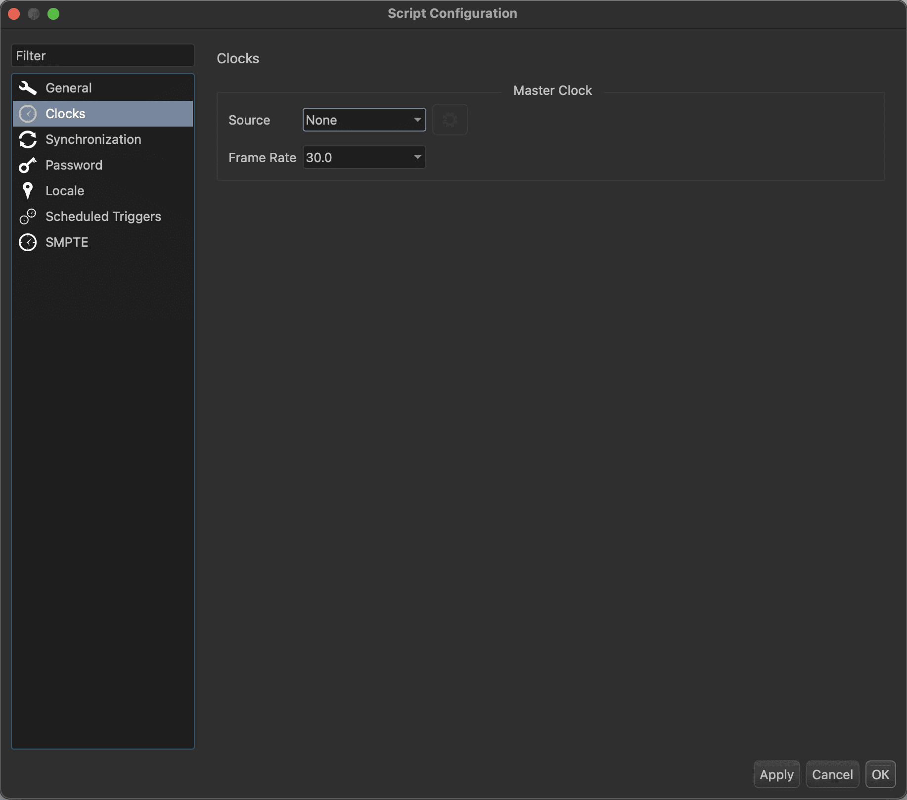 Next, go ahead and select the Clocks section on the left of the Script Configuration screen.