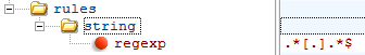This string rule has an optional parameter of "regexp". This indicates that a regular expression defines a valid entry for this string. The above string defines a valid filename.