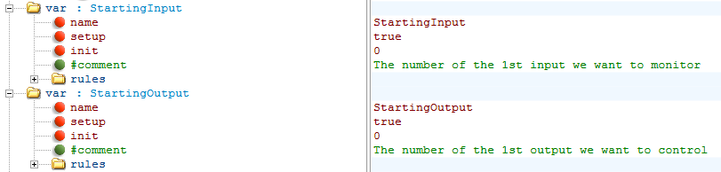 These variables have the special attribute "num_inputs" or "num_outputs." The screen shot below shows the XML setup from XML Notepad with these special variables.