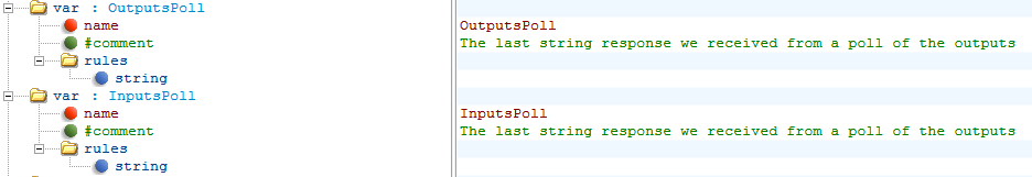 In order for any information to be set for the input or output values, the V16Pro needs to believe it is storing the information for a variable. So, temporary variables are created to use to store the responses we get from the device. These are usually just strings, but can be very handy for debug purposes of your product file. These can be any names you wish and have no special properties.