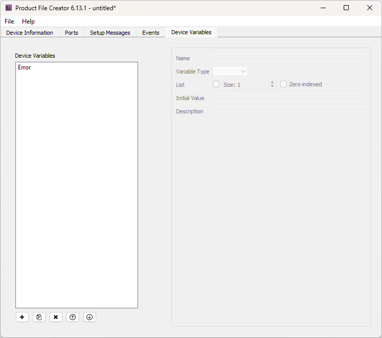 The Device Variables tab is used to define variables that can be used by the product file and in WinScript Live. To learn more about device variables please see this article.