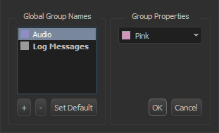 Groups can be used to organize and color-code events when in the timeline view. While in timeline view, press the Groups button to add and remove event groups. Each group can be assigned its own background color.