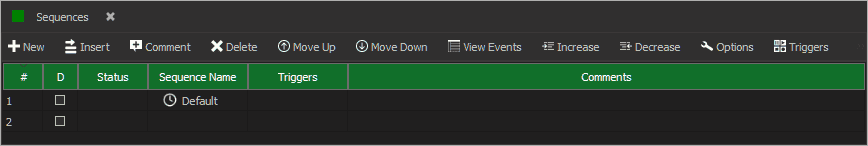 Check the column marked 'D' to disable a sequence. This will prevent the sequence from starting and also stop the sequence if it is currently running.
